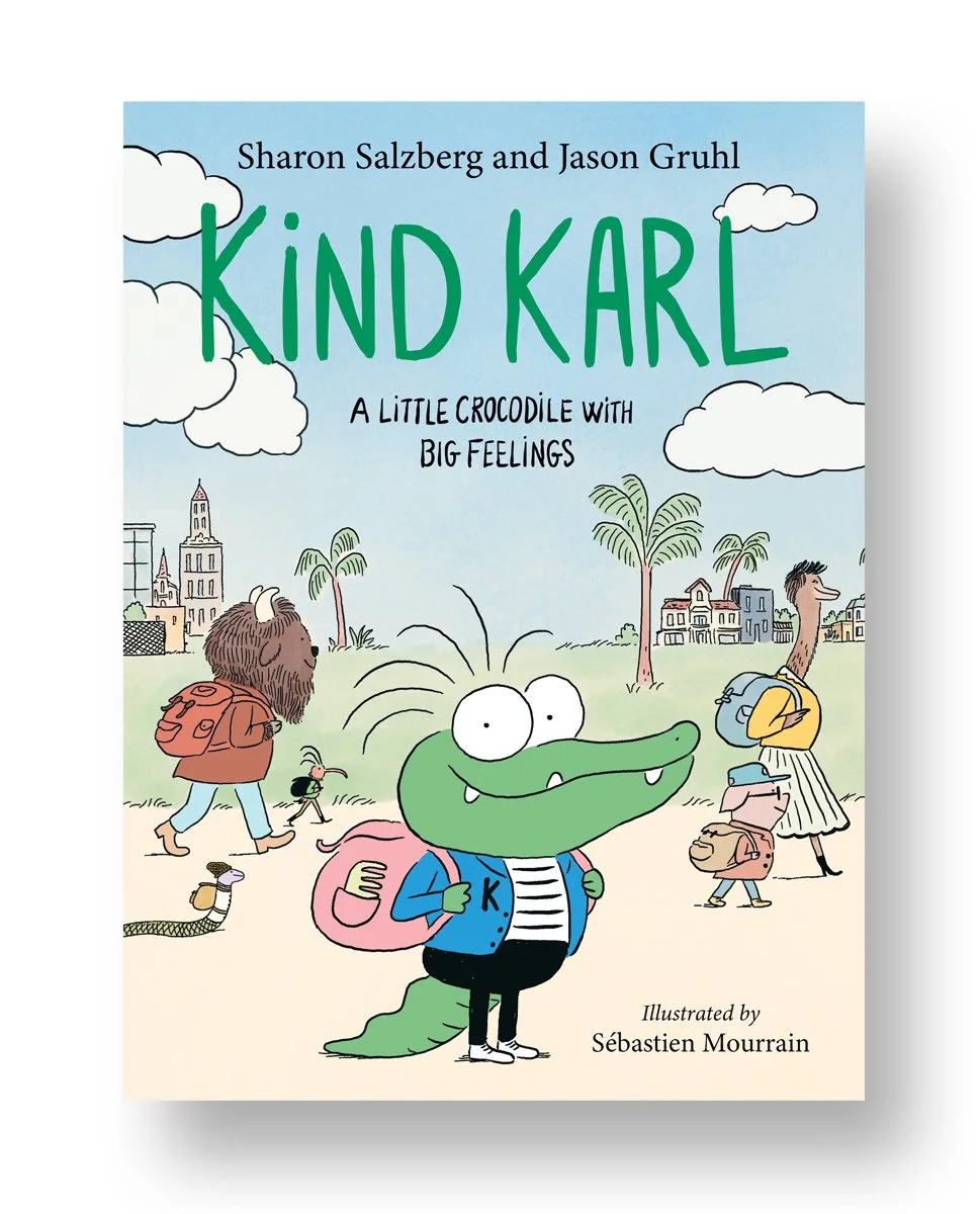 Karl is a crocodile who lives in Orlando. He loves cardigans, crepes, and combing his hair. And he has a terrible temper! Full of lovable animal characters, this playful story is a children’s adaptation of Sharon’s beloved book Lovingkindness. Like the original, it asks the question, “Why does what we do, say, and care about make a difference?” The book explores how generosity and mindfulness contribute to a life of happiness and connection.